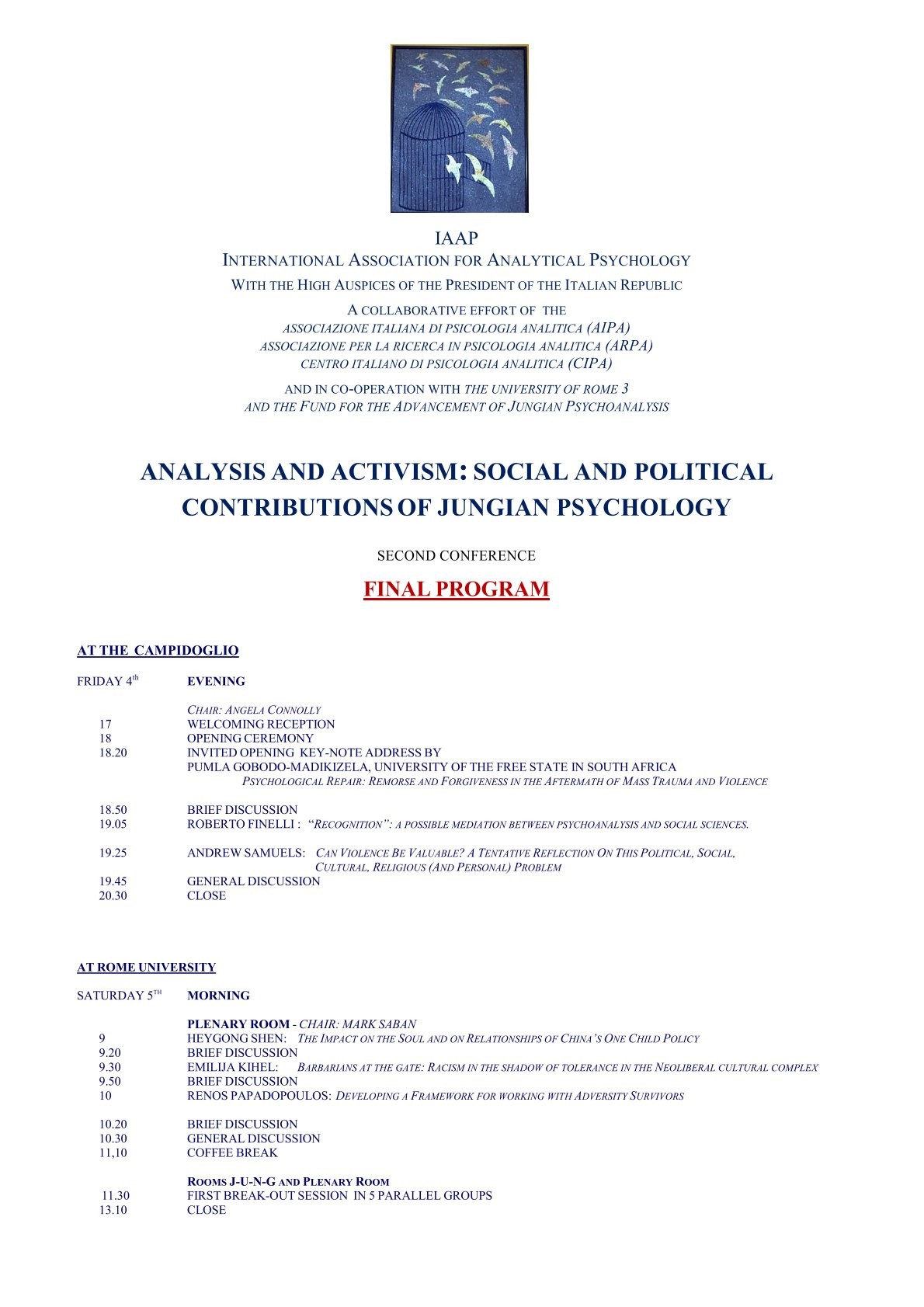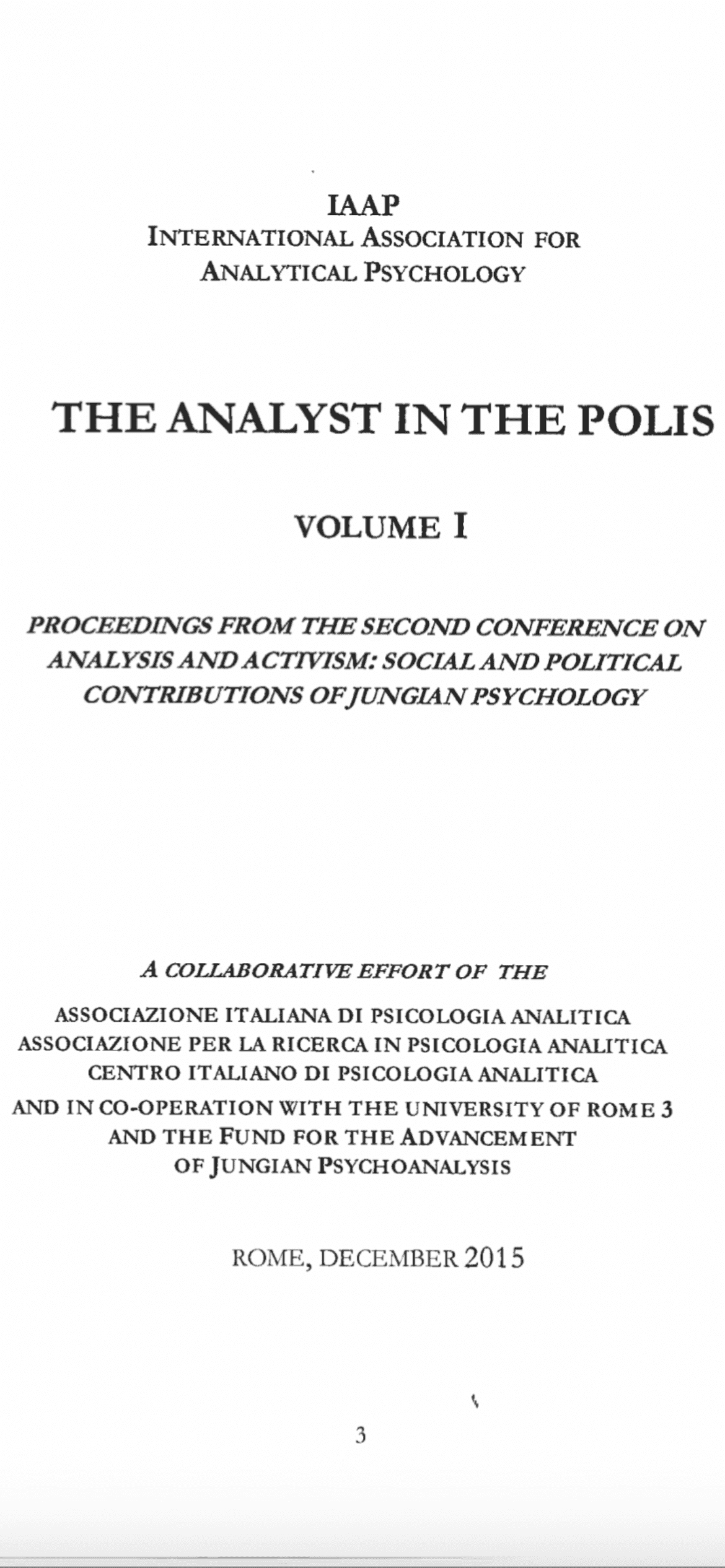 Analysis and Activism - Social and Political Contributions of Jungian Psychology - Second Conference - IAAP - AIPA - ARPA - CIPA Rome December 2015