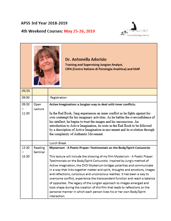 Jungian Lectures in Singapore May 2019